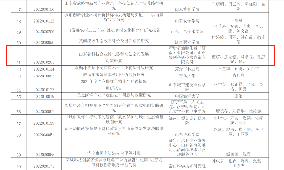 近日,山东软科学研究会发布《关于公布2022年度山东软科学优秀科技成果奖获奖名单的通知》,研究课题《山东省科技企业孵化器和众创空间发展对策研究》荣获三等奖。该课题由启迪之星副总经理曹萌牵头,山东产研启迪孵化器执行总经理房光银等参与。