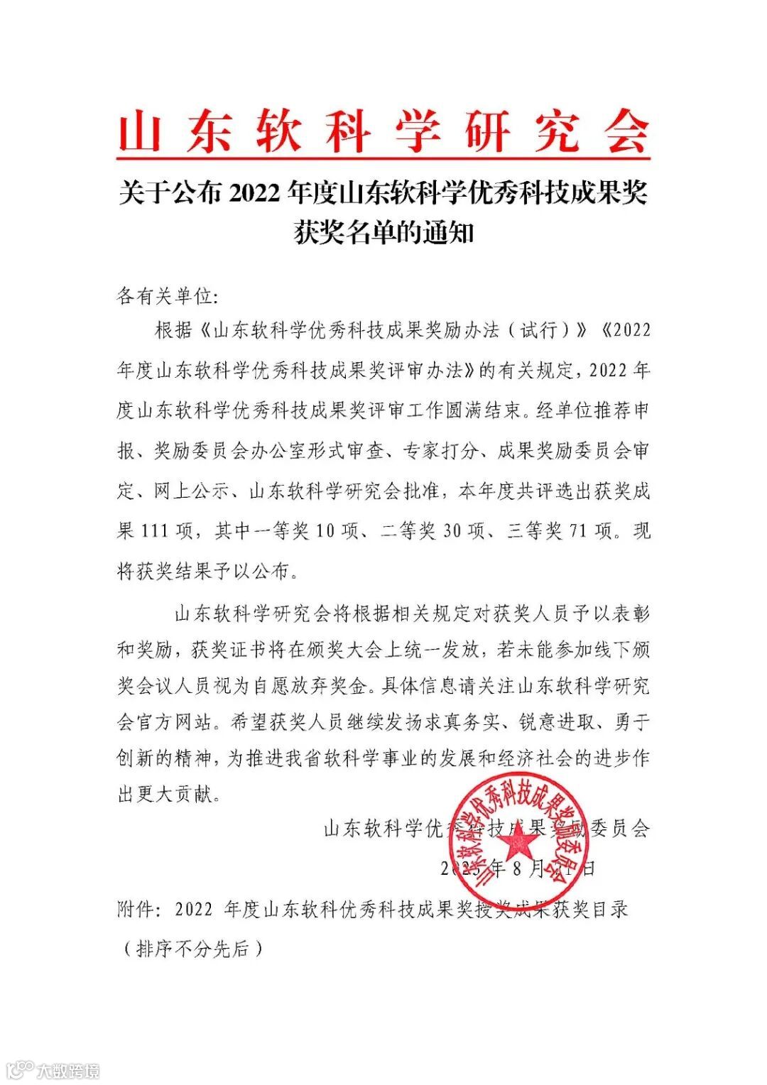 附:获奖通知截图