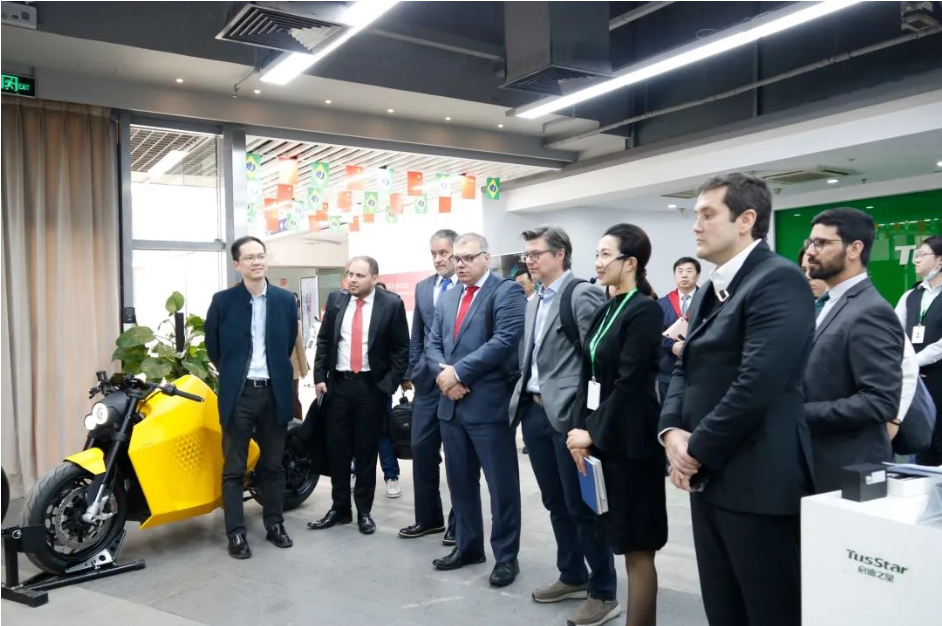▲启迪之星团队向巴西工商代表团介绍∞计划企业产品