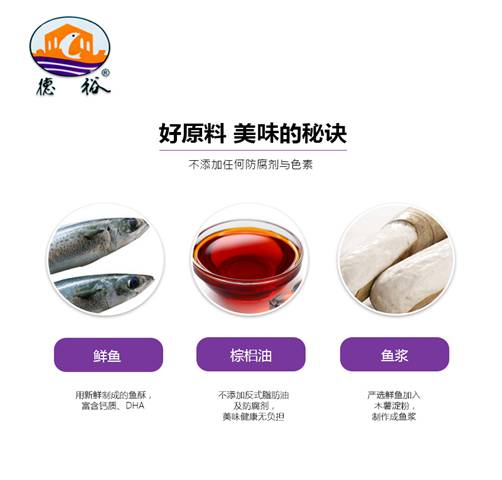 添加DHA及钙质的营养鱼酥,德裕的鱼浆制品很受欢迎,