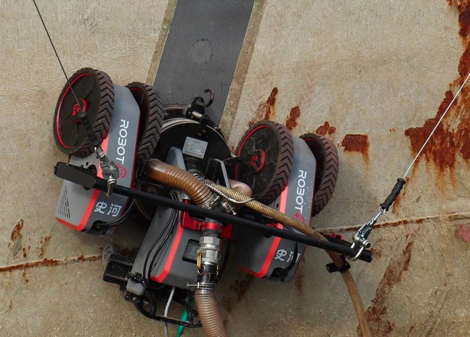 史河机器人瞄准船舶、化工行业开发的水射流清洗机器人,基于柔性化磁吸附底盘技术,具备高负载自重比、强曲面适应能力、防尘、防水、防爆等特点,适用船舶、石化等钢结构表面锈蚀、旧涂层的清理,不仅能显著提升除锈效率与质量,还能保障高空安全作业。