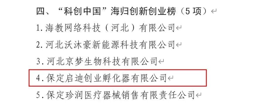荣获2022“科创中国”试点城市(保定)建设项目榜单海归创新创业榜