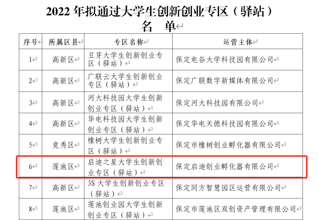 通过了保定市科技局2022年度大学生创新创业专区(驿站)认定