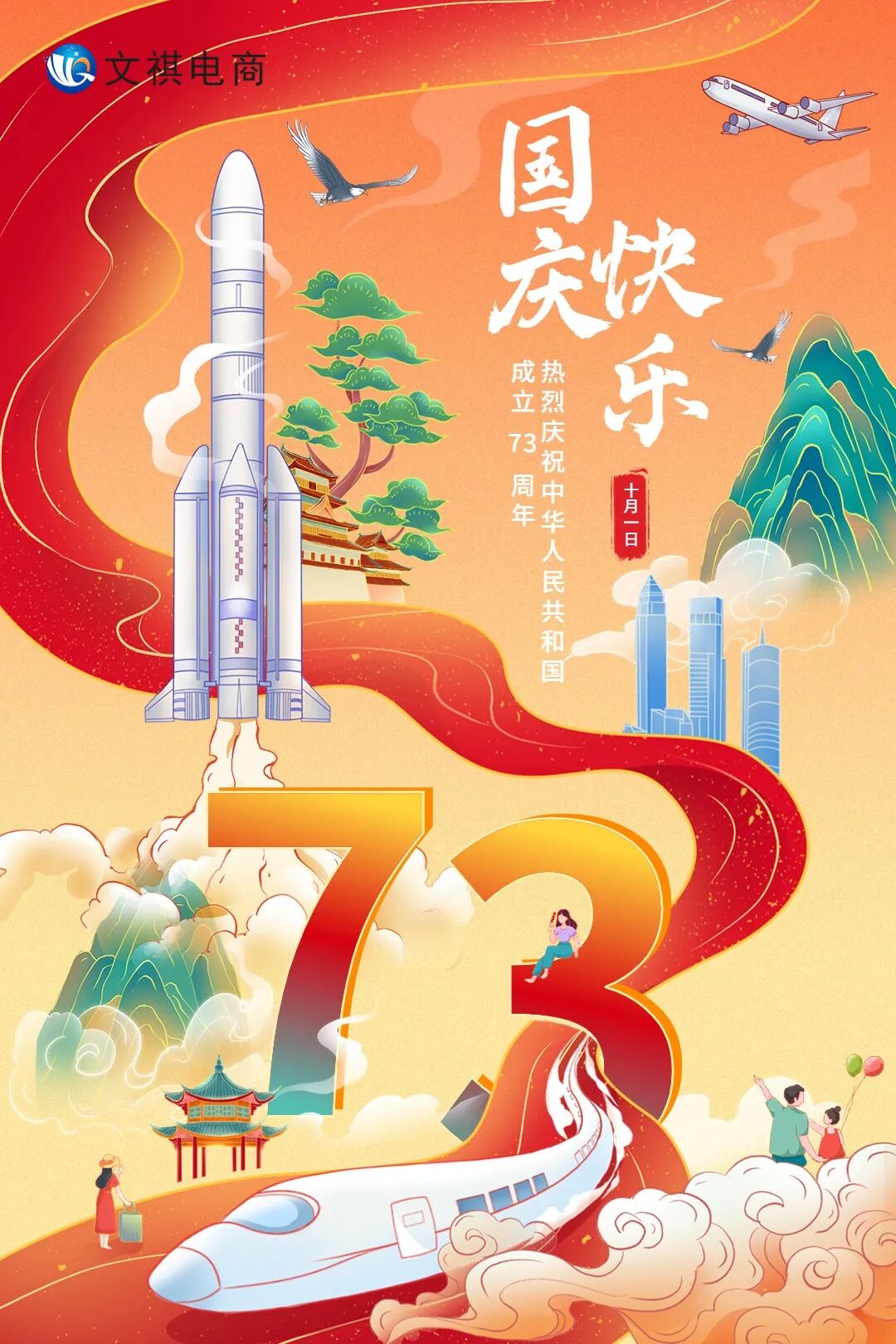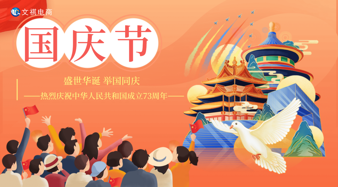 金秋十月迎国庆,振兴中华情意浓。国庆佳节,喜庆的气氛,弥漫在大街小巷,节日的祝福,纷至沓来。值此举国同庆之际,文祺全体员工祝祖国生日快乐,愿祖国繁荣昌盛!