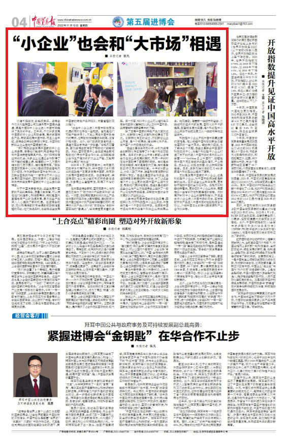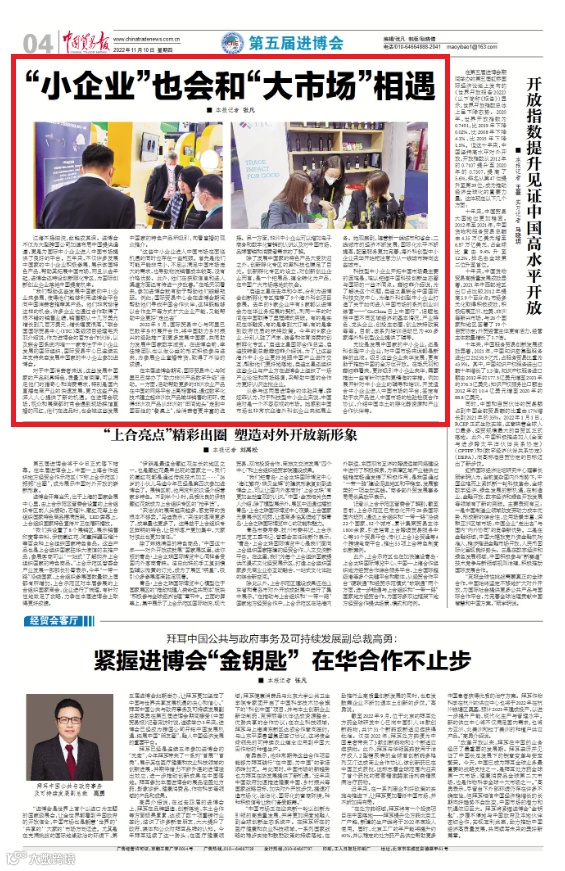 江海不择细流,故能成其深。进博会不仅为大型跨国公司加速布局中国提供通道,更是为国际中小企业进入中国市场提供了良好的平台。五年来,不仅许多发展中国家的中小企业积极参展,展示该国特色产品,帮助其拓展中国市场,而且从去年起,进博会还特设创新孵化专区,为国际创新创业企业落地中国提高机率。