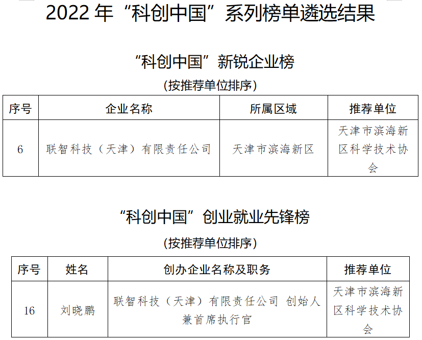 启迪之星(天津·海洋园)入孵企业联智科技入选“科创中国”新锐企业及创业就业先锋榜单