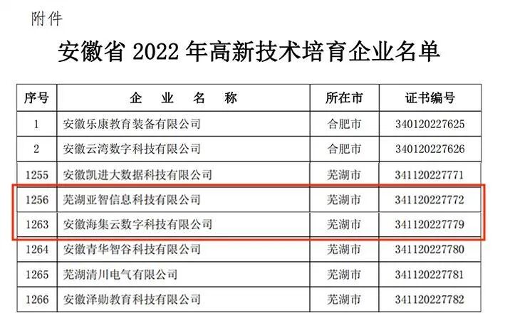 启迪之星(芜湖)孵化企业安徽海集云数字科技有限公司、芜湖亚智信息科技有限公司获得高新技术企业培育证书