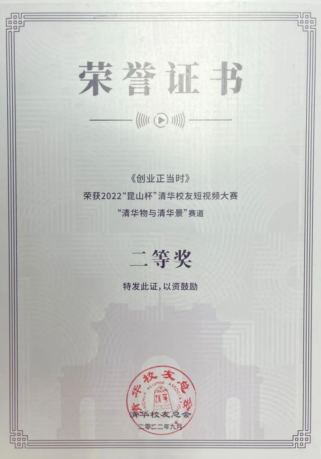 近日,清华校友总会公布了今年组织开展的2022“昆山杯”清华校友短视频大赛获奖名单。经过专家评审、网络投票,启迪之星报送的视频作品《创业正当时》荣获“清华物与清华景”赛道二等奖。