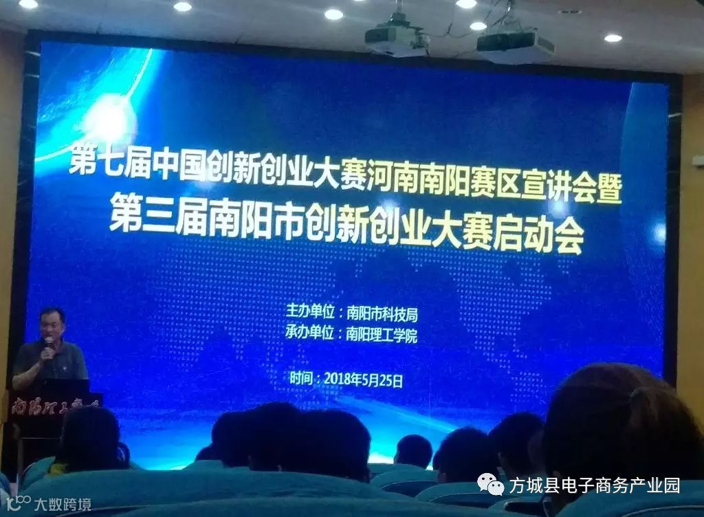 2018年5月25日上午,方城县电子商务产业园&创梦工场众创空间应邀前往南阳理工学院领创空间二楼报告厅参加由南阳市科技局主办,南阳理工学院承办的第七届中国创新创业大赛河南南阳分赛区暨第三届南阳市创新创业大赛启动会。省组委会专家慎丽老师就大赛介绍、参赛条件、比赛安排三个方面的问题进行了详细的宣讲,并由南阳市科技局崔云宝局长宣布大赛正式开启。