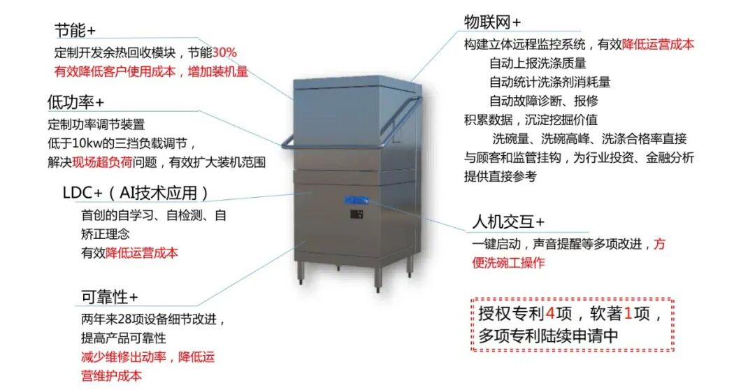 智清空间以提升洗碗机关键设备性能为基础,致力于为餐饮客户提供“最佳清洁解决方案”。公司自研的升级版洗碗机,构建立体远程监控系统,可实现人机交互,具备节能、低功率等优点。