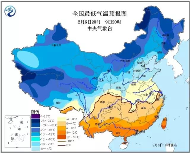 中央气象台预计,9日凌晨,最低温度0℃线将位于长江中游至江南东北部,江南南部和华南北部最低气温将达到4~8℃。