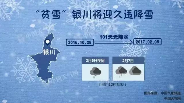 而之前患上“贫雪症”的内蒙古、宁夏等地,也会在这次冷空气过程中抢到“雨雪福利”,尤其是对100多天没有过任何降水的宁夏银川来说,这场小雪可谓是“及时雪”。
