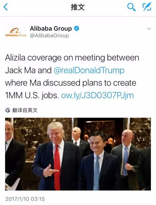 而一个月后,马云爸爸就带着100万个就业岗位的大手笔和特朗普见面了。马云称这是个“非常有成效的会面”。“我们将重点放在小企业上,”马云说,“我们讨论如何通过阿里巴巴平台帮助美国小企业将产品销往中国和其他亚洲国家。”