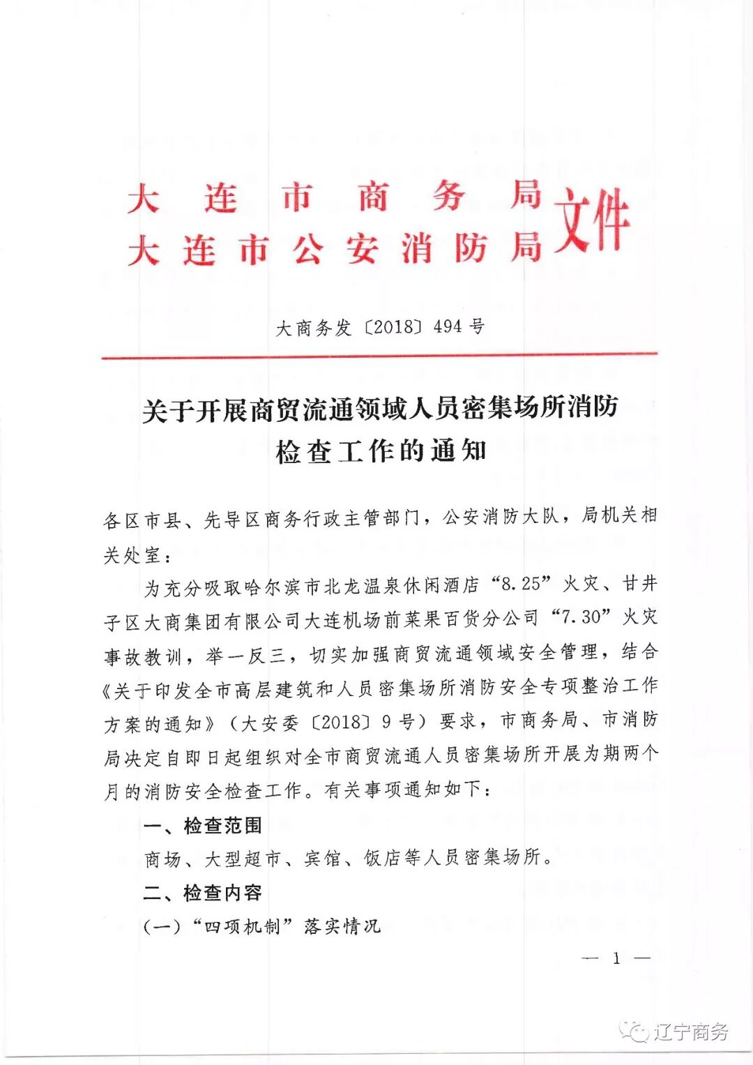 导读:大连市商务局联合消防局部署开展商贸流通领域人员密集场所消防安全检查工作