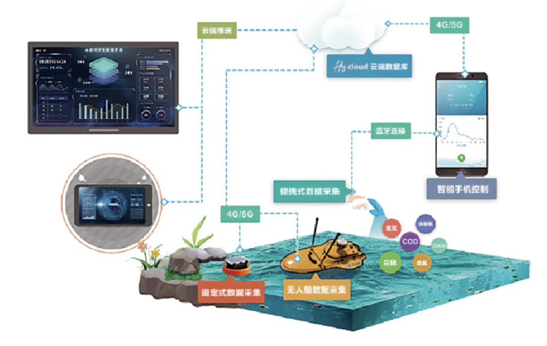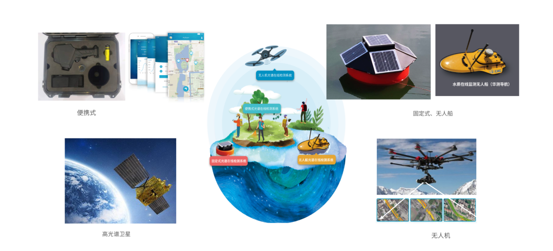 6. 多参数一体化高光谱智能检测系统,目前已形成“地、空、天”、“点、线、面”全方位立体在线采集水质的能力。