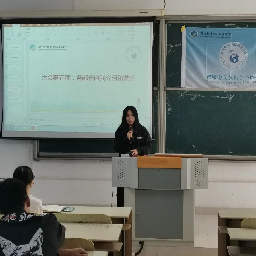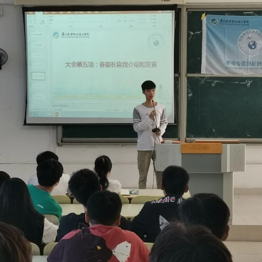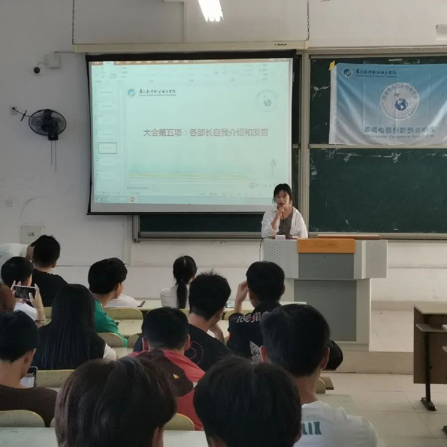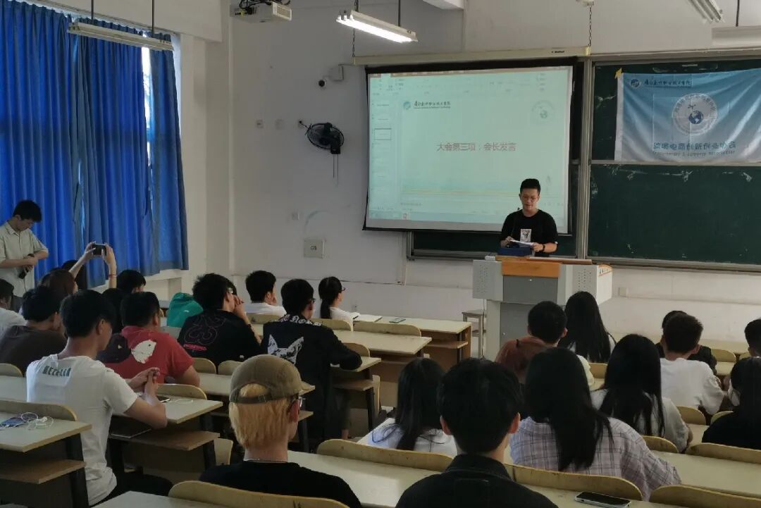 此次大会由第三届网商部副部长王琼主持。大会的第一项议程是我们的欧阳老师上致辞,给我们讲解了关于跨境电商未来发展的趋势与前景;并为我们介绍了协会的文化,和关于协会创立初期到现在的历史。也给协会伙伴们分享了这次参与新零售买手创新创业大赛成员获奖的喜讯。我们有5支队伍,共4支队伍获得了一等奖。欧阳老师的致辞,在场的小伙伴们都洗耳恭听。