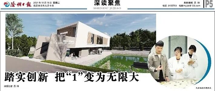 沧州日报整版报道壹计划企业「文暄瑞通」:踏实创新 把“1”变为无限大