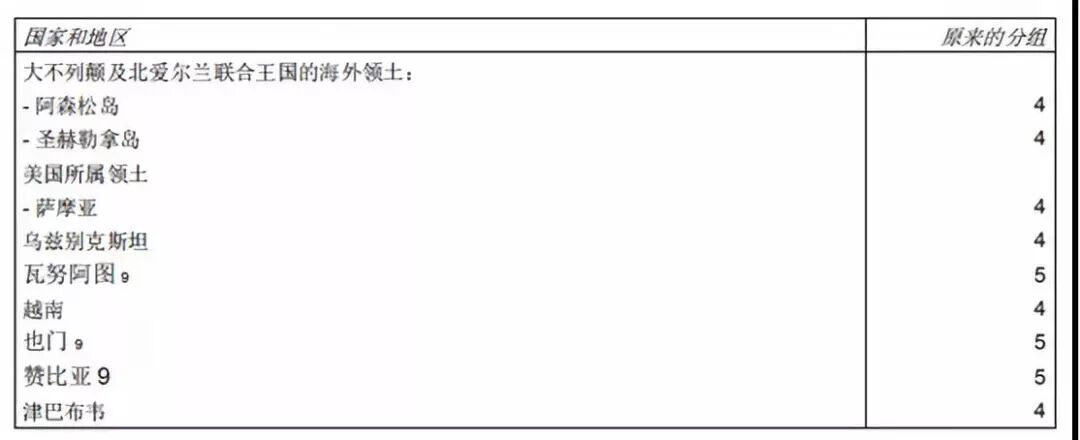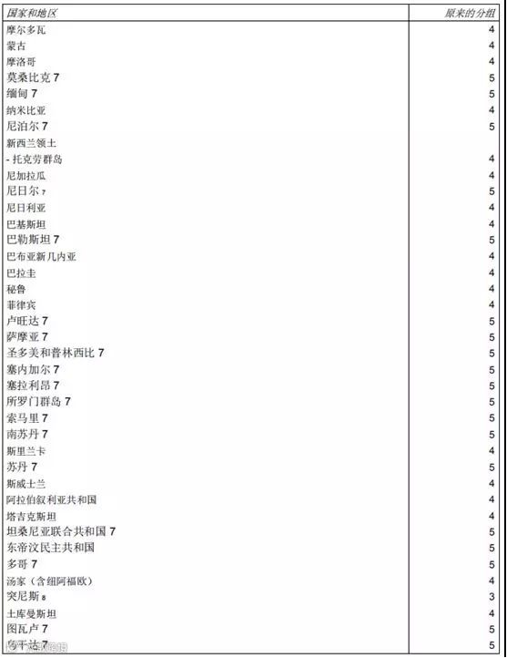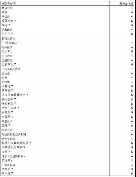 万国邮联合8月6日发布105号通知,从11月15日起,将不再接受以下第四类邮政所对应国家或地区的任何包裹。