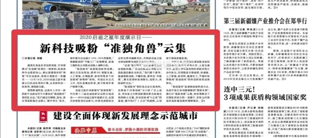 河南日报要闻版:2020启迪之星年度演示日,科技企业扎堆亮相河南