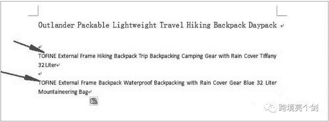 这里只做示范,只复制、粘贴了3个标题。这个方法需要注意的地方是,绝对不能把别人的品牌名复制、粘贴进去,不然会被平台判定为侵权,品牌名没有任何内涵,只是该产品的品牌名而已。
