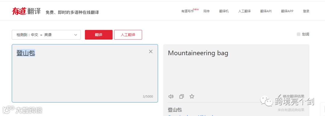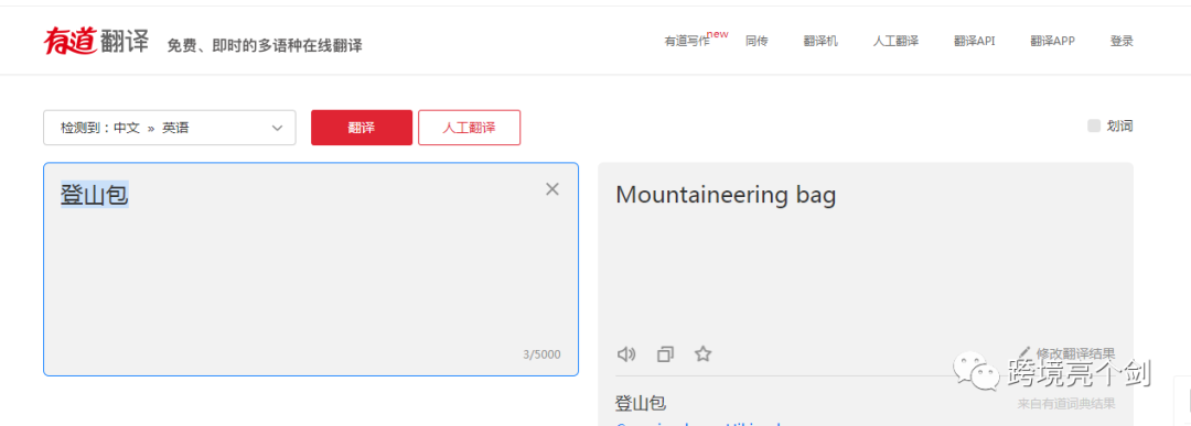 以登山包产品为例,假设你不知道登山包的英语单词是什么,你该怎么办?