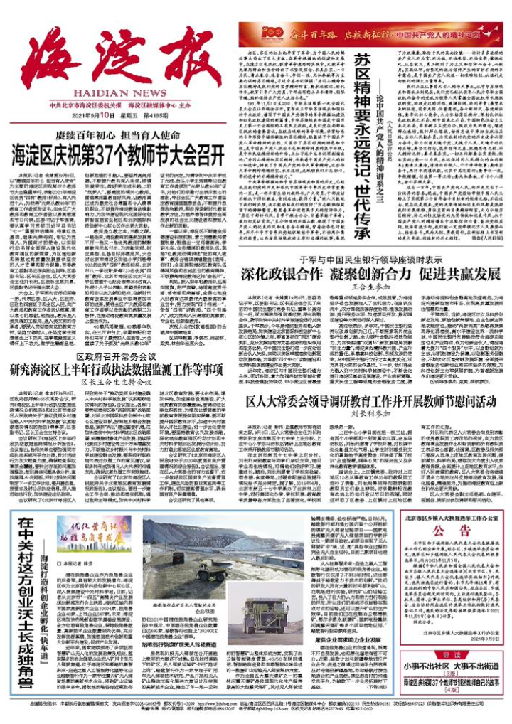 编注:9月10日的《海淀报》头条、海淀网《创新中关村》栏目第391期同时聚焦启迪之星·集智未来人工智能孵化器孵化企业踏歌智行。其中提到,“潜在独角兽企业的加速涌现,既离不开自身发展,也和孵化器培育密不可分。”
