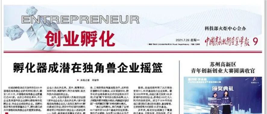 《中国高新技术产业报道》:启迪之星培育中国潜在独角兽企业