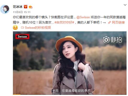 今年9月,范冰冰正式成为澳洲Swisse形象代言人。昨日,范冰冰也在个人微博发布了自己为Swisse蔓越莓精华拍摄的第一支广告片。