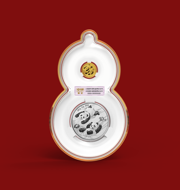 采用中钞鉴定经过360多天的层层技术攻关成功研发的业内首个“曲面立体封装工艺”,首次将熊猫金银币以“吉祥葫芦”造型组合封装,饱含福气满满,福禄全的美好寓意。