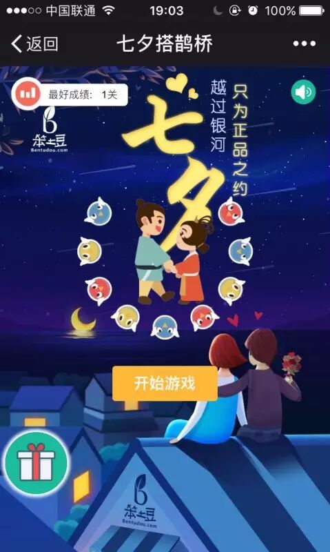 参与笨土豆七夕活动即可100%得奖!