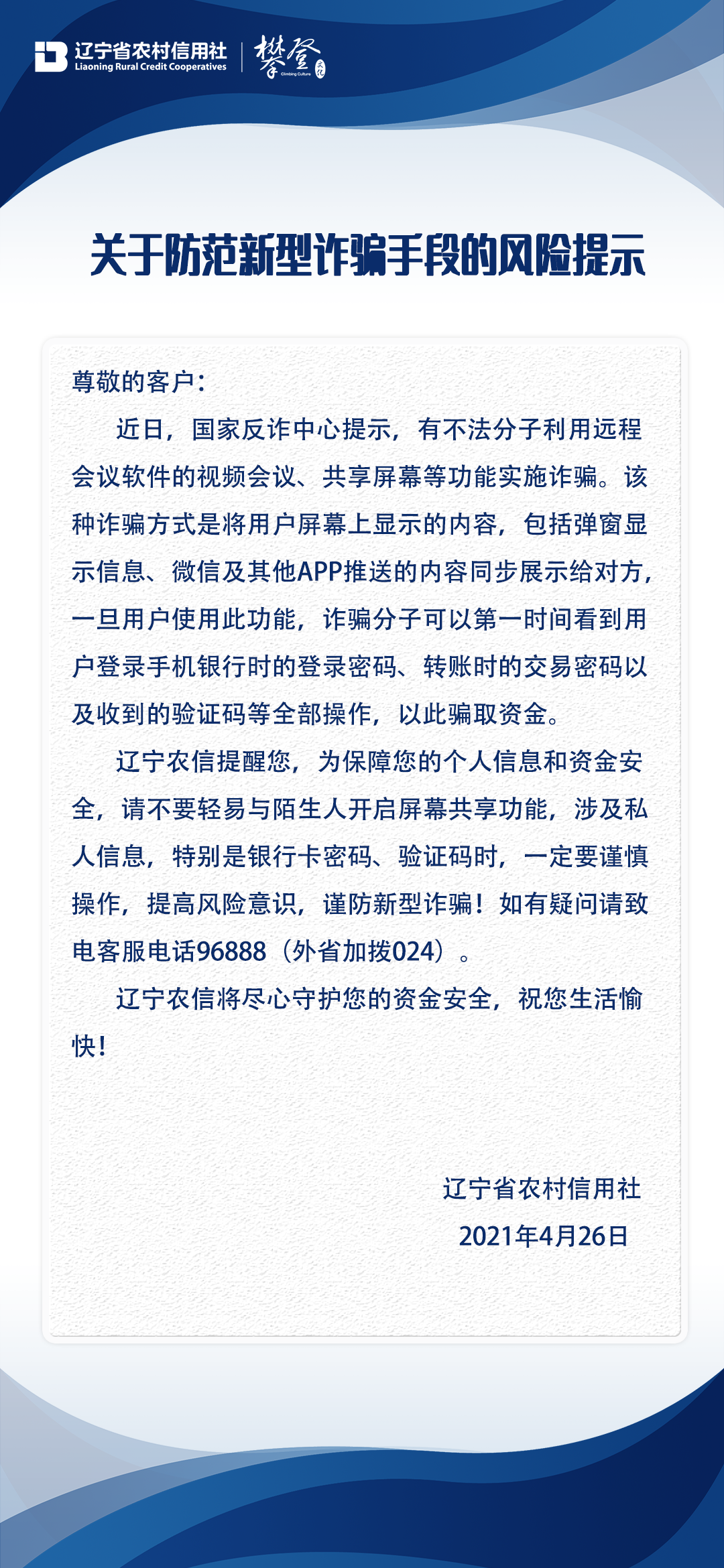 辽宁省农村信用社官方公众号,提供账户查询、预约服务、金融资讯等服务。本机构已按照国家规定参加存款保险、本机构吸收的本外币存款依照《存款保险条例》受到保护。
