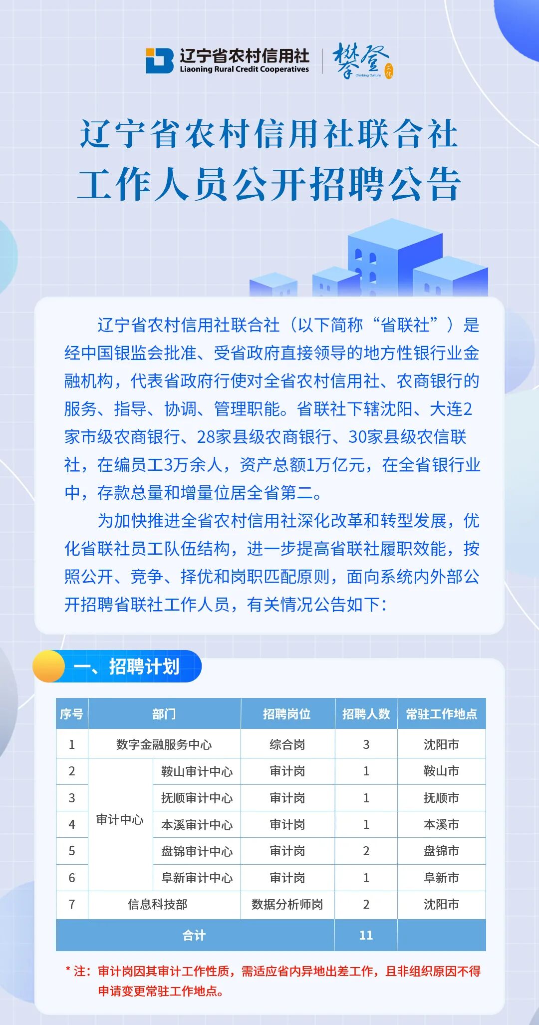 辽宁省农村信用社联合社工作人员公开招聘公告