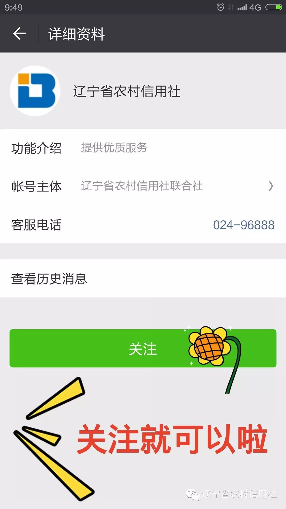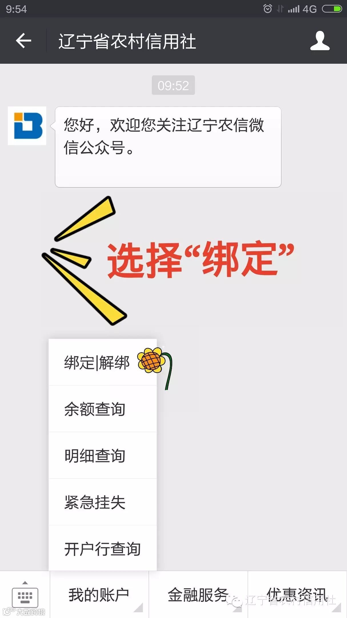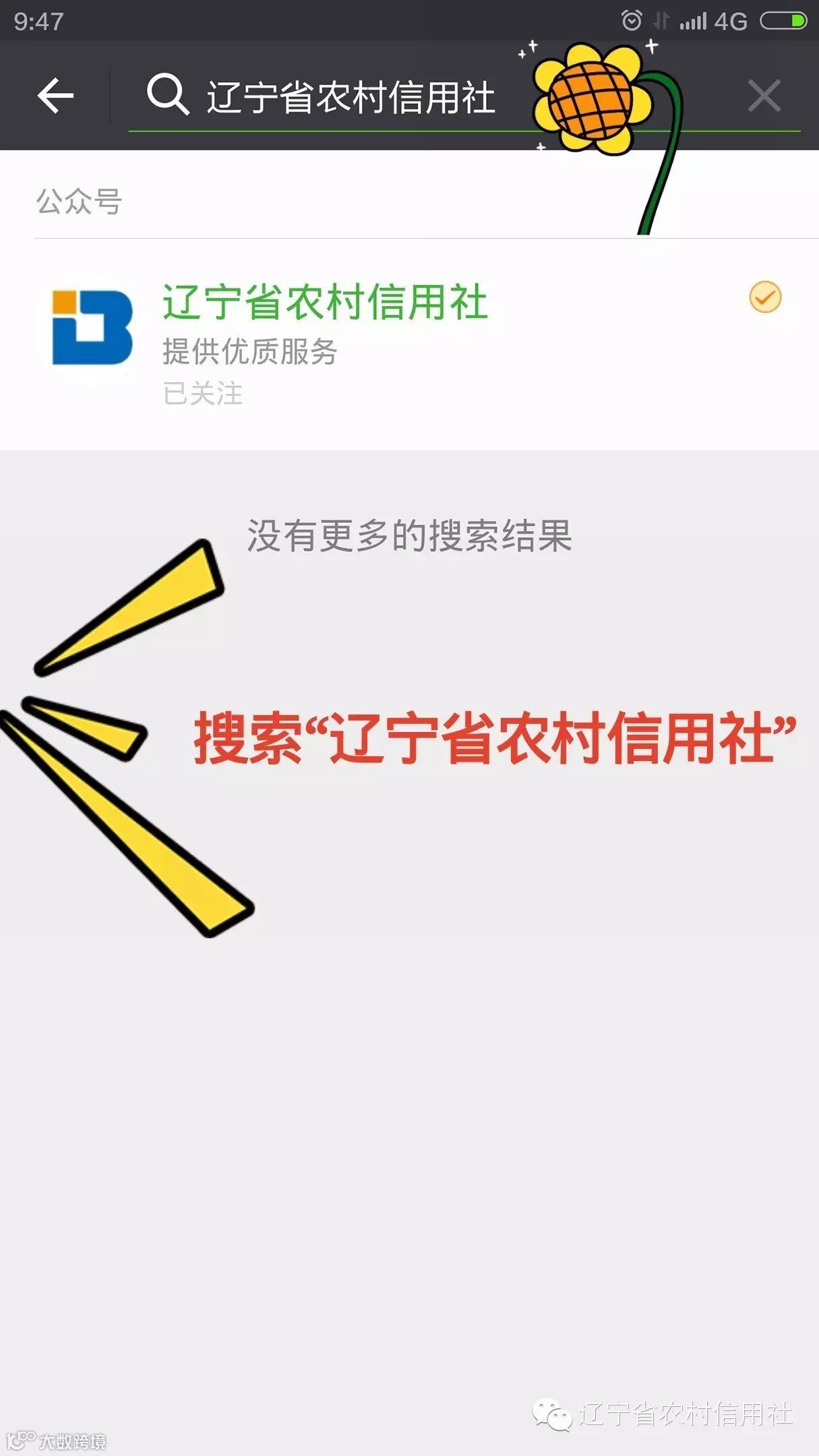 一、微信账户关注“辽宁省农村信用社”公众号。