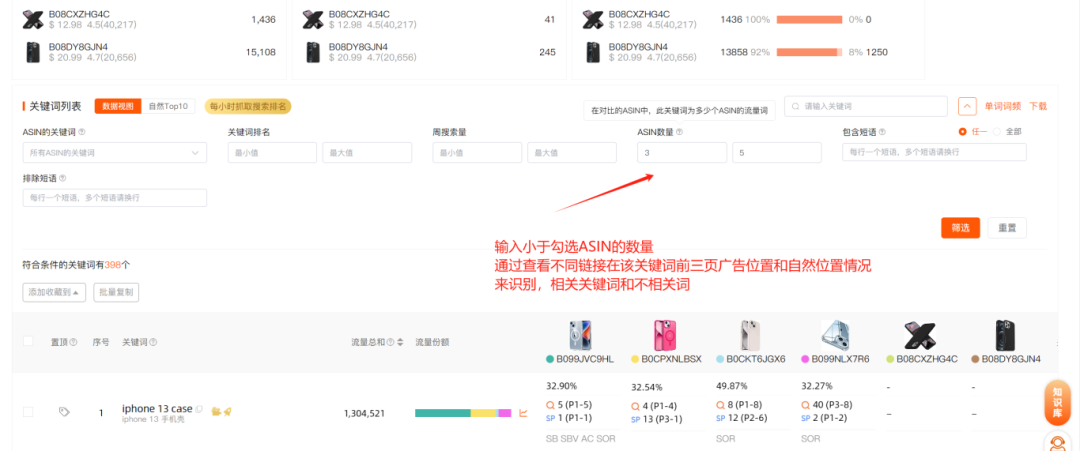 图源:关键词分析-- ASIN列表2、多ASIN对比—高效筛选强/中相关关键词