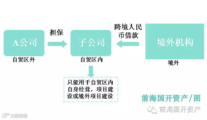 如果A公司有境外项目投资,A公司可以在自贸区内成立1家子公司,如果想获得境外金融机构的跨境人民币贷款(境外资金低于国内银行的利率),为其提供担保,可通过自贸区内的子公司向境外金融机构申请跨境人民币贷款。借用期限必须1年以上。