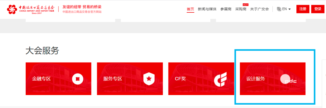 进入广交会官方网站👈,下拉找到大会服务,点击“设计服务”;