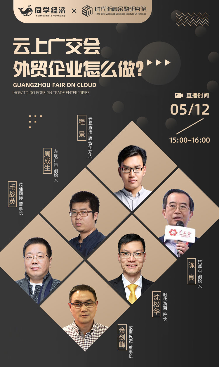 2020年5月12日下午,贸点点创始人陈良先生受邀做客由时代浙商金融研究院主办的“云上广交会,外贸企业怎么做?”直播活动,与嘉宾一起深度解读云上广交会,为广大外贸企业参加云上广交会出谋划策,助力外贸企业在“外贸寒冬”中找到机遇。