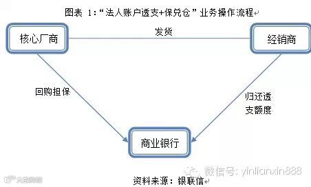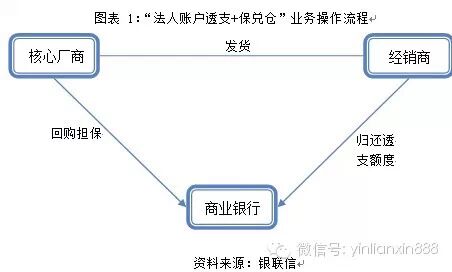 所谓“法人账户透支+保兑仓”业务,就是指银行应核心企业厂商、经销商双方的申请,签订《三方合作协议》,进而为经销商提供法人账户透支融资,专项用于经销商向核心厂商支付货款。这项创新业务的出发点在于,经销商为了提高对核心厂商的反应速度,希望在银行获得法人账户透支额度,而非银行承兑汇票(这是由于银行承兑汇票需要在银行提交交易合同,并负责传递,所需时间较长)。