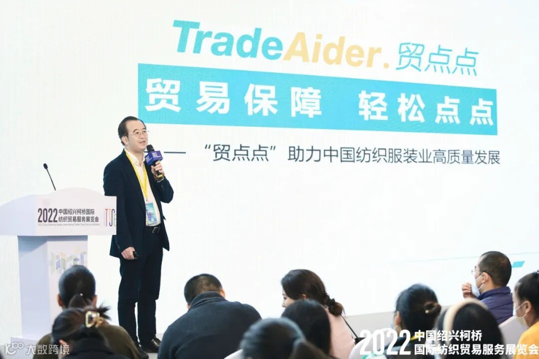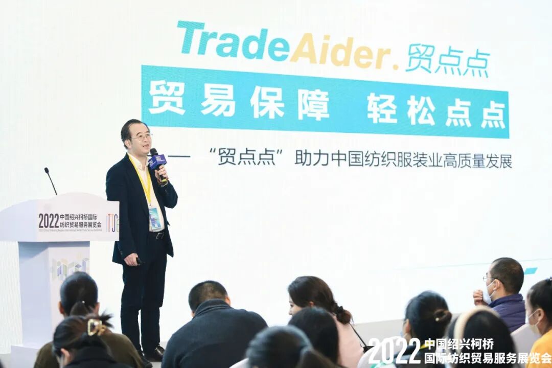 “一块布”链动全球纺织,“小服务”创造共富之路。11月16日-18日,由浙江省贸促会、绍兴市人民政府主办的2022中国绍兴柯桥国际纺织贸易服务展览会联合第24届中国绍兴柯桥国际纺织品博览会在绍兴国际会展中心隆重举行。全球贸易保障数字化服务平台贸点点受邀参展,贸点点创始人、董事长陈良作为特邀嘉宾出席展会主论坛并发表主题演讲。