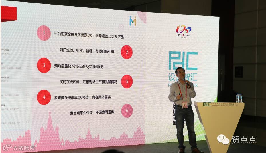 这也是贸点点平台上线以来迎来的首个订单,来自某巴西公司在广州的办事处。贸点点借助互联网平台,提供专业第三方QC服务,按照就近匹配的原则,倡导合作共赢、轻松高效的工作方式,旨在帮助全球贸易上下游各关联方降低业务成本、提高工作效率、提升生产质量,并为QC利用空闲时间赚钱提供有效途径。10月23日,贸点点(用户端)在广交会正式发布上线,一经发布,受到展会现场众多参展商、采购商关注,尤其是MyQC质量控制服务,广受好评。目前平台注册合作QC已超万人,可以提供纺织、服装、鞋类、玩具等12大产品的验货、监柜、巡检等服务,许多用户纷纷表示愿意通过贸点点平台预约QC服务。