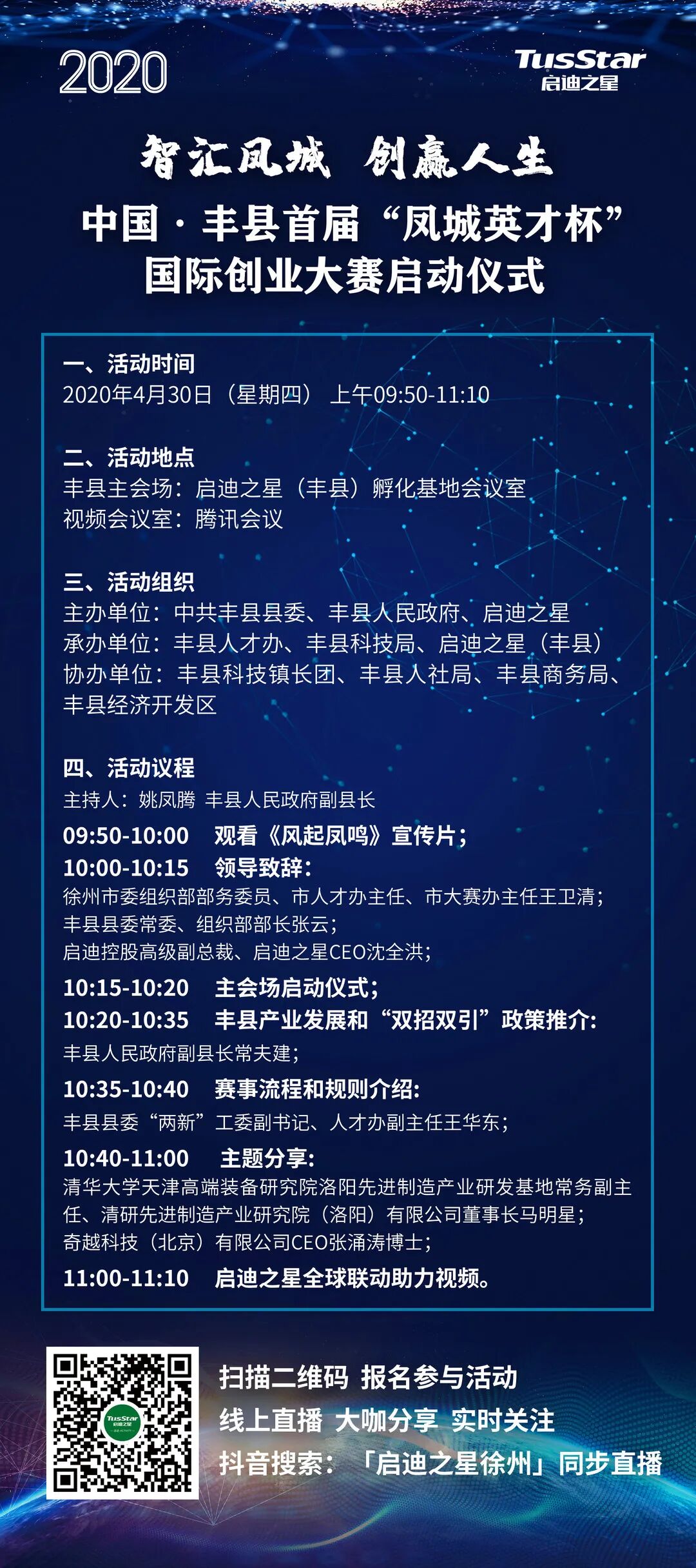 围绕丰县县委、县政府“工业立县、产业强县”战略部署,深入实施“凤城英才”计划,加快高层次人才集聚,切实吸引一批符合丰县产业定位和发展的高层次创业人才,更加系统化提升人才工作集聚力,更加精准科学有效地聚才用才兴才,为振兴丰县、全面建成小康社会提供有力的人才支撑和智力支持。2020年4月-10月将举办“
