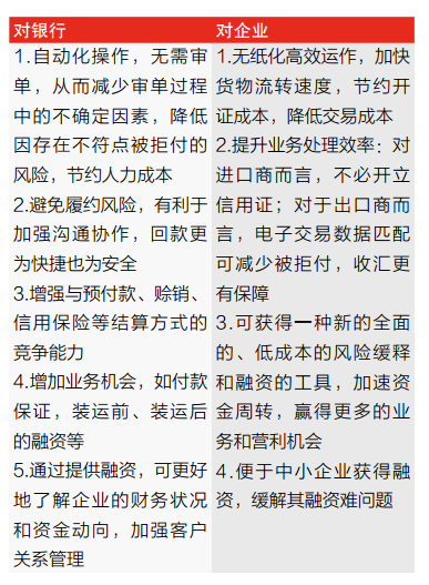 以上对BPO特点的分析表明,BPO能够为进出口双方更快地获得单据和得到融资提供有效的解决方案:它可以缩短银行处理单据的时间,促进客户尽快付款完成交易,从而及时为新交易腾出信用额度。BPO对银行和企业而言,虽然也还存在着一些风险和不利因素,但总的来说还是利大于弊的。
