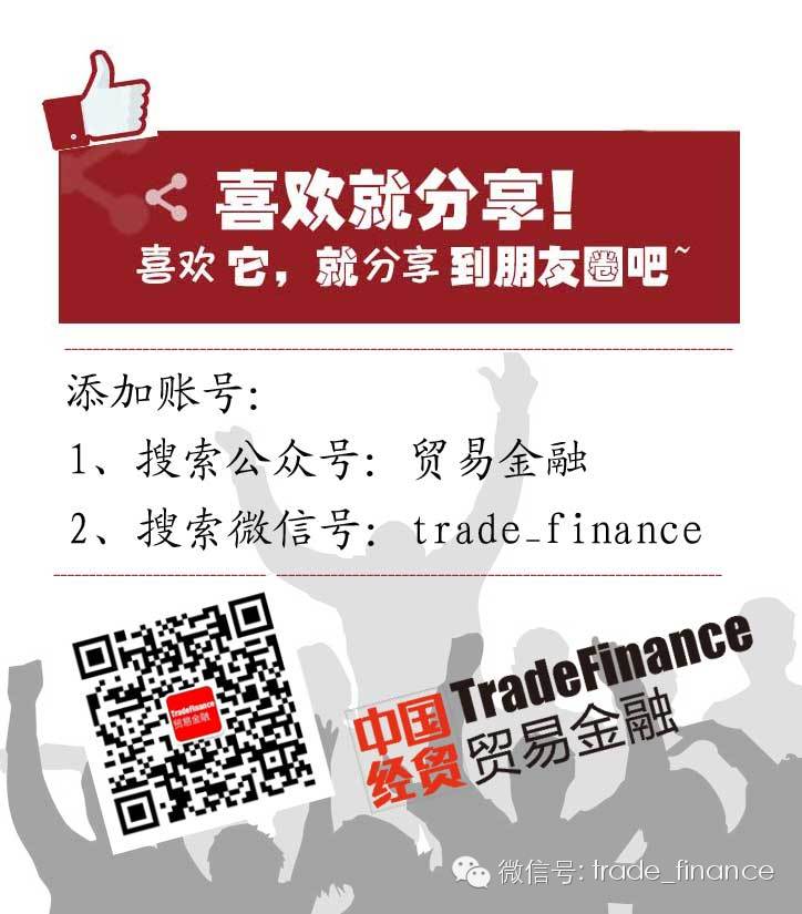 如果您对贸易金融相关方面有独特的理解,可与我刊主编个人微信号tradefinance联系,也可投稿至邮箱22210433@qq.com,一旦我们选用,将在内容中对您的推荐分享表示感谢, 也请您推荐更多的朋友关注我们。