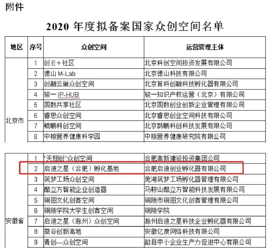 可链接:星空计划;三一众创;箱联天下;辰天科技;潍铭扬智能;博感科技;玮航科技