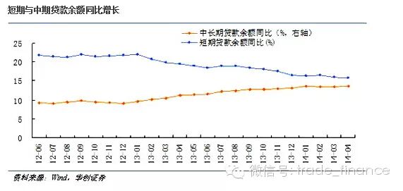 然而,有限的信贷供给却正在被部分软预算约束以及对紧缩不敏感的市场主体的债务滚动所大量吞噬,使得中小微企业成为紧信贷下最终的“被挤出者”。一个与常理相违背的数据是,在经济景气下行周期中,2014年1-4月中长期贷款占比异常上升。2014年1月以来新增中长期贷款的占比陡然升至60%以上,除3月不足50%外,占比逐月攀升,4月底占比达到66.3%。贷款利率的上升一定程度上也可以由中长期贷款占比上升来解释。目前中长期贷款占比的攀升显然并不代表企业对经济前景的乐观预期,而是实体经济中的“僵尸栓塞”在通过信用展期、表外转表内等方式维持其存量信贷的滚动。债务展期的时点上基本也可以与之相印证,2009年发放的大量五年期投放在基建、重化工、国有企业等领域贷款在2014年陆续到期。尽管从2013年底以来银行已经在收缩对过剩产能、房地产和融资平台的信贷投放,然而即便是上述领域债务雪球的滚动,在有限的信贷供给下也必然对其他企业的融资需求形成“挤出”。同时,银行为了防止不良率的迅速攀升,也不得不通过变相展期等方式延续对上述领域的输血。