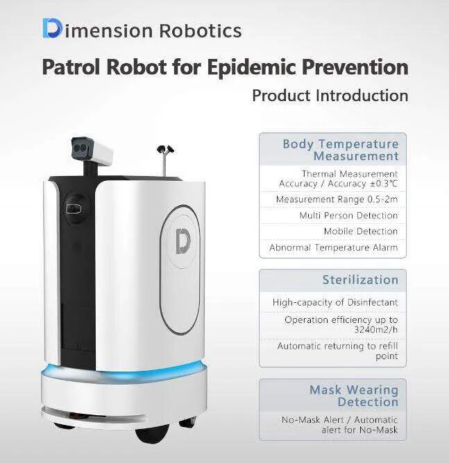 ●产品特点:MoRo S 巡检机器人通过高度智能的机器人定位、环境建模、导航技术和图像识别等技术,代替人工完成疫情高风险区域的日常巡视、红外人体测温、人员戴口罩检测识别及消毒液体的喷洒,可以有效降低疑似病人人员流动及外出等安全隐患,提高现有人员检测的工作效率和质量,缓解值班人员力量薄弱的问题,提升工作效率。
