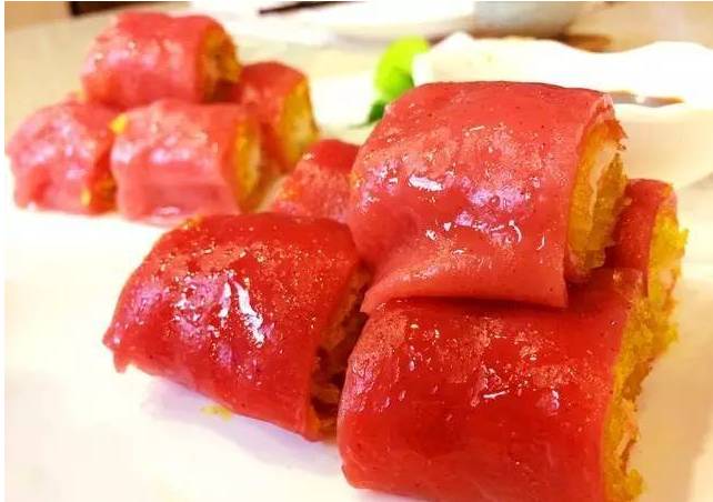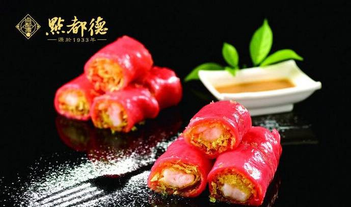 来这儿自然要吃获非物质文化遗产的点心蜜汁叉烧包、金牌虾饺皇。虾饺皇皮薄馅多,褶子不少于12个,虾仁塞得都快透出来,晶莹可爱,一口下去结结实实的满足 感。金沙红米肠也是每次来点都德的标配,红米磨成浆做成肠粉,再裹上虾仁,蘸点酱油,味道好极了。还有他家的油条也让人印象深刻,特别有嚼劲。