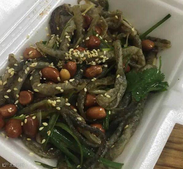 鱼皮是他家招牌,辅料用花生、芝麻、小葱等,又脆又爽,口味稍咸。