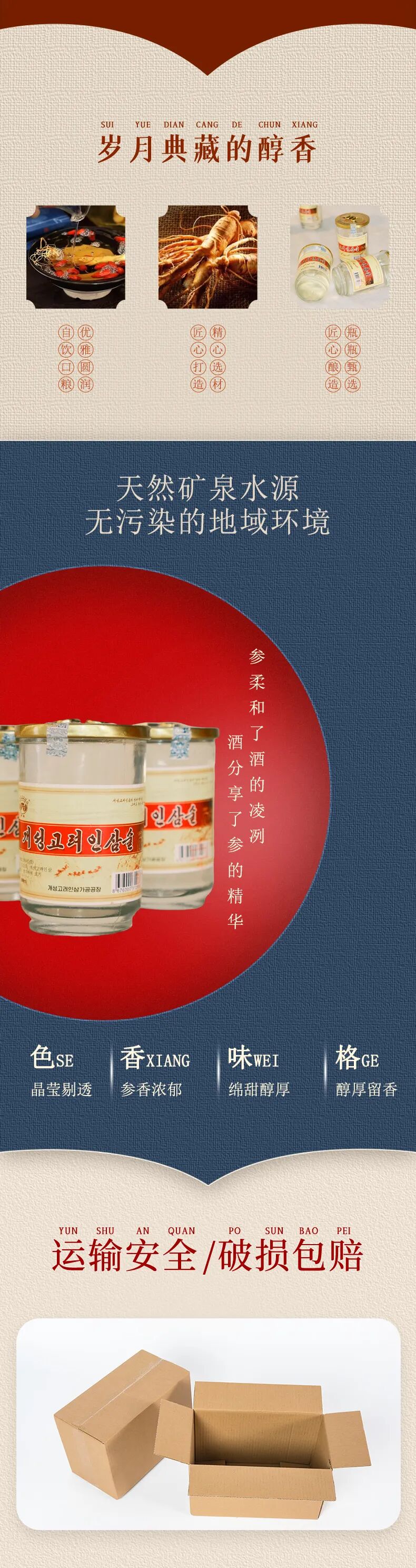导读:购买商品请点击下方链接,自动跳转线上商城!!!朝鲜商品馆商城开城高丽人参酒(口杯装)是朝鲜生产的一种便携式人参滋补酒,通常采用小容量包装,方便随身携带和即时饮用。
