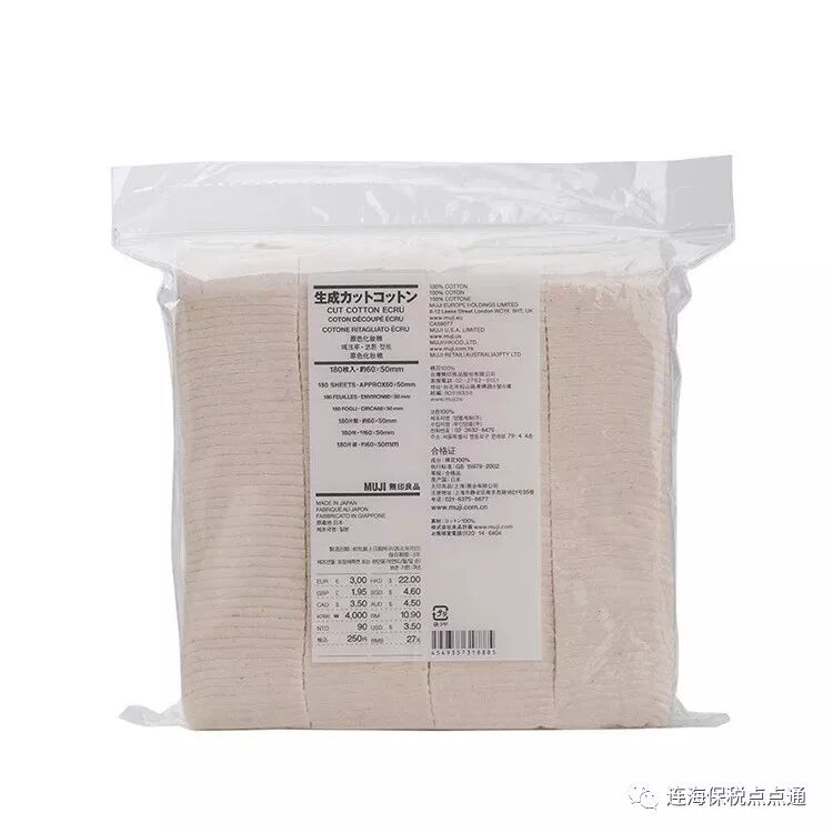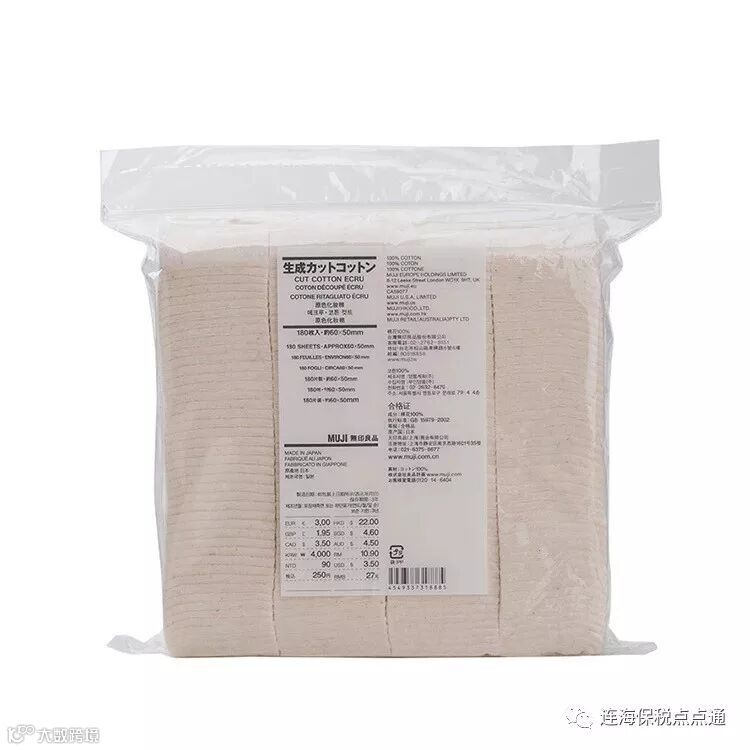 日本 无印良品MUJI 无漂白化妆棉180枚(原色) 敏感肌用 超柔软